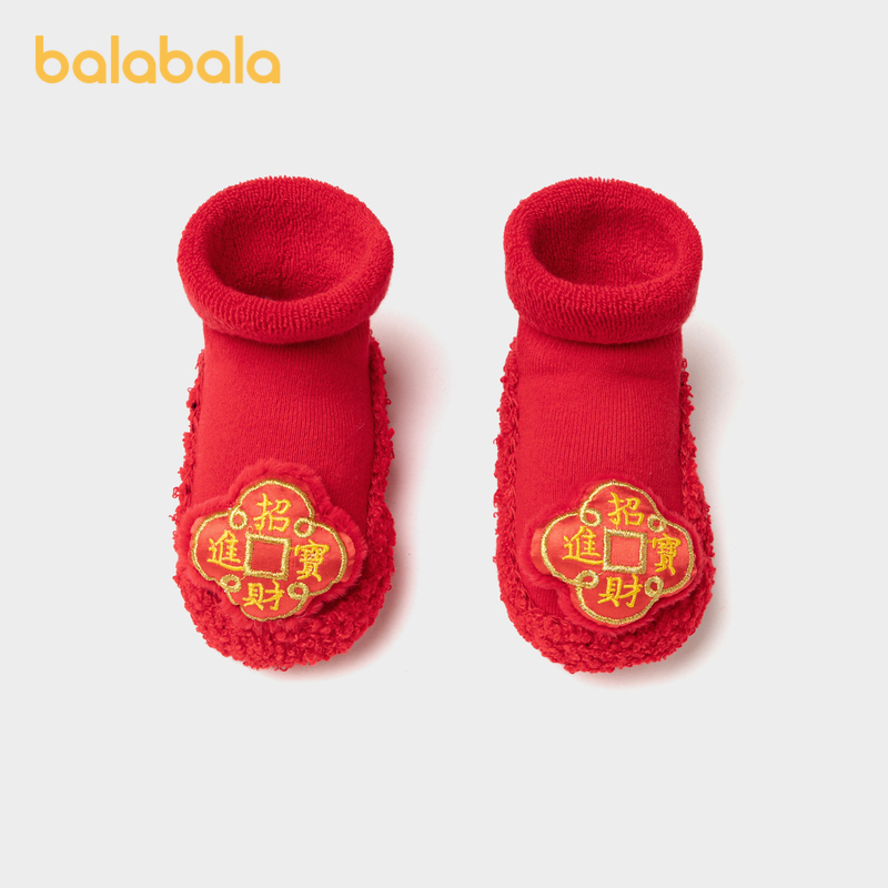 巴拉巴拉宝宝地板袜毛圈保暖蛇年新款 本命年步前 男女童袜子学步鞋