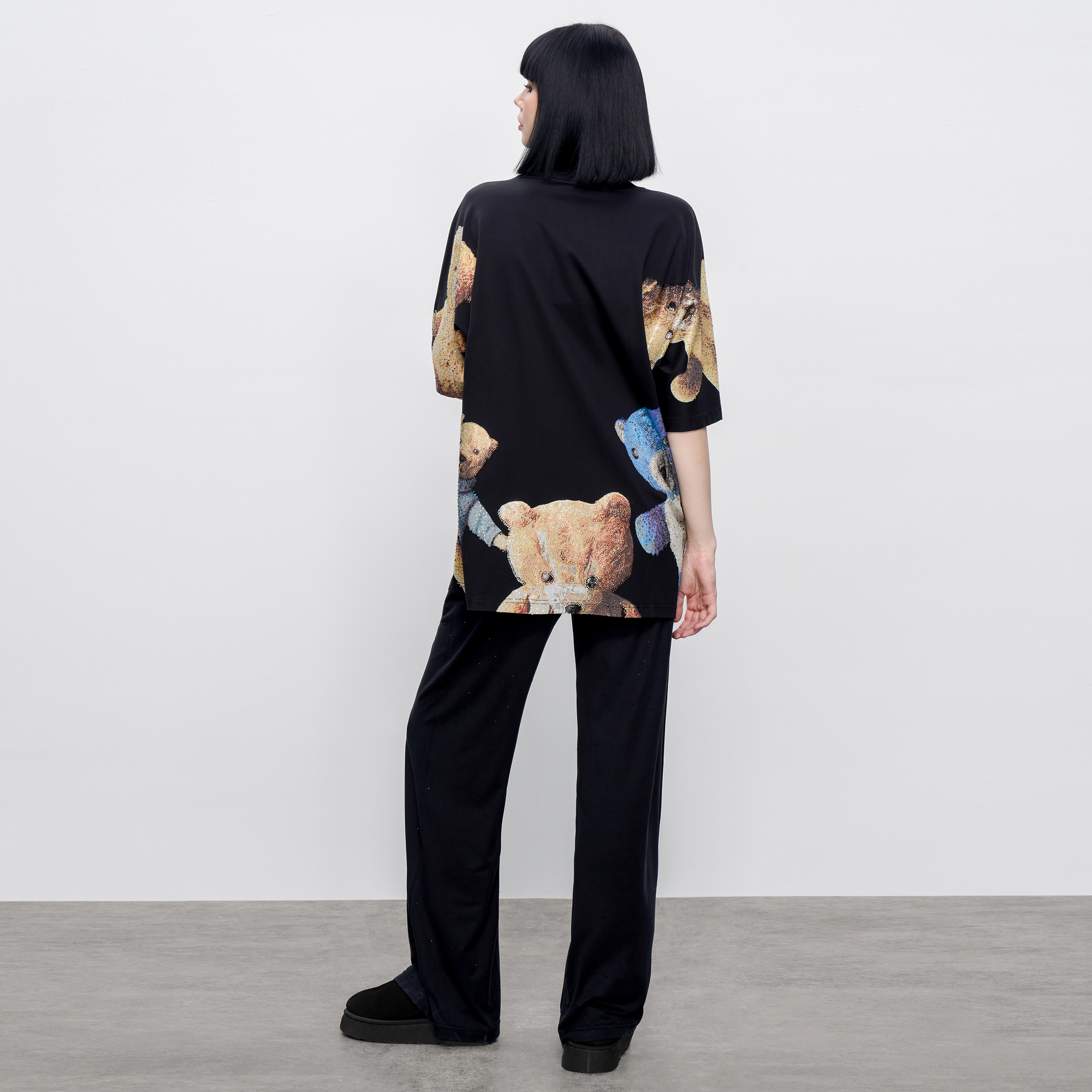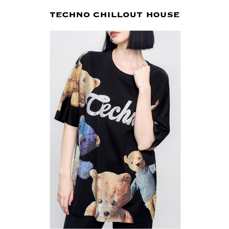 新款 TCH烫钻卡通熊夏日潮流时尚 夏季 T恤男女同款 宽松百搭短袖