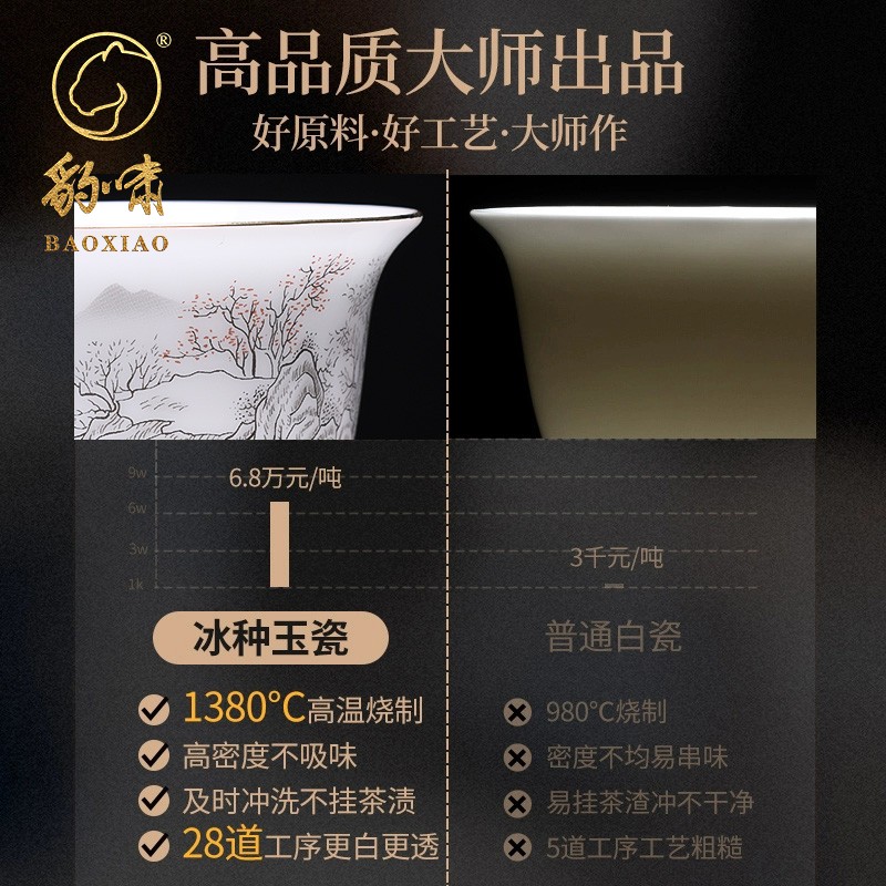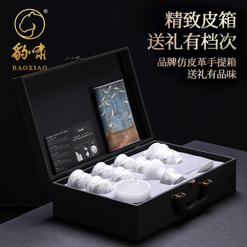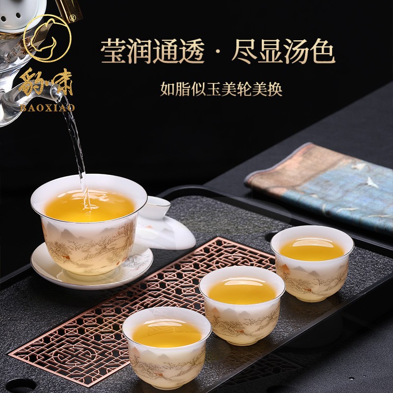 冰种羊脂玉白瓷泡茶功夫茶具套装 家用办公室陶瓷盖碗茶杯轻奢高档