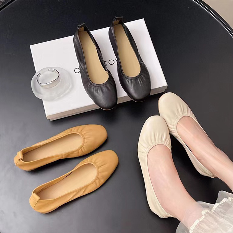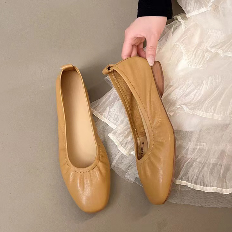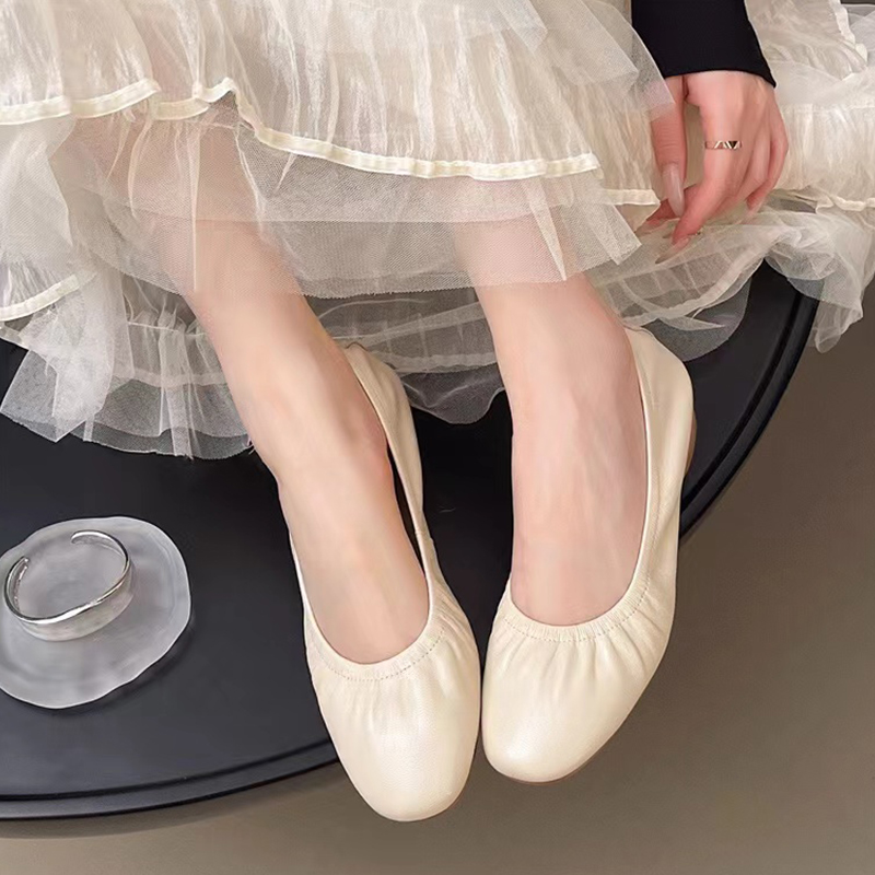 欧货浅口单鞋 米蛋卷鞋 真皮一脚蹬软底女鞋 皮鞋 低跟四季 褶皱奶奶鞋