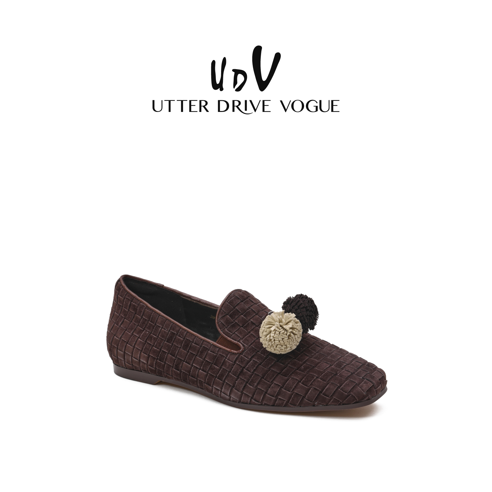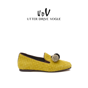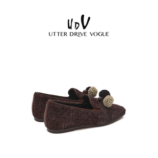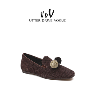 编制方头豆豆鞋 UDV老钱风复古羊皮平底单鞋 乐福鞋 新款 女2025秋季