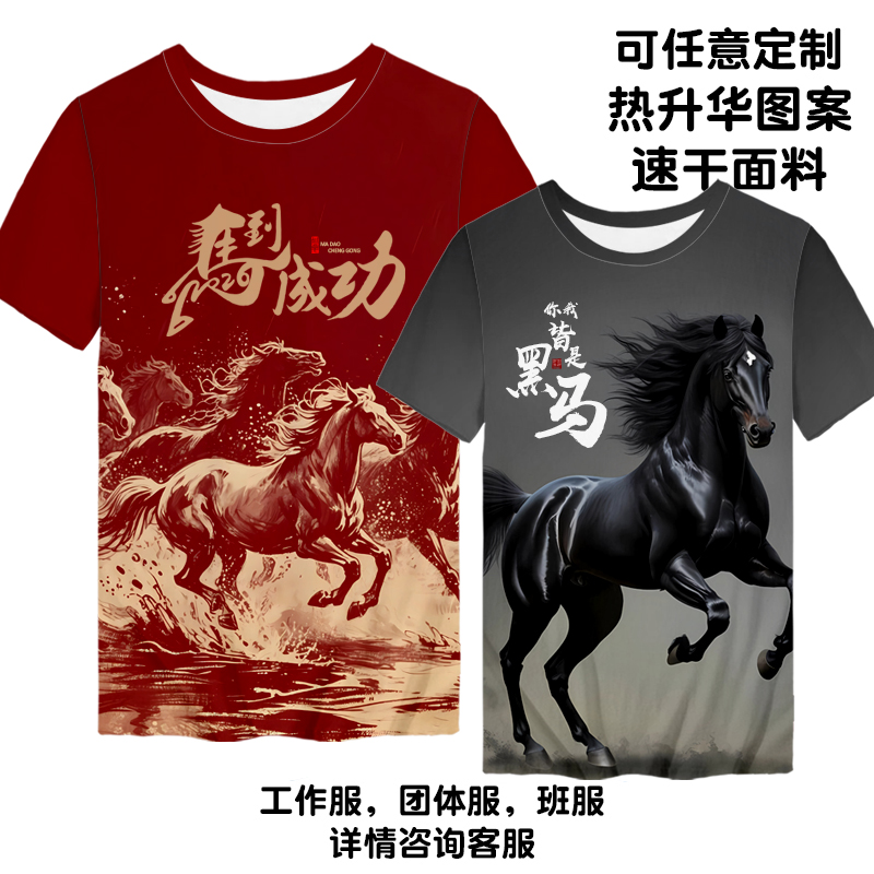 男女半袖 2026马年马到成功你我皆黑马本命年过新年速干短袖 t恤衫