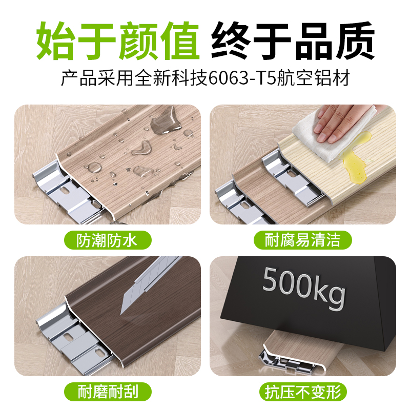 奶油风铝合金踢脚线6cm金属不锈钢新型卡扣地脚线极简超薄贴脚线