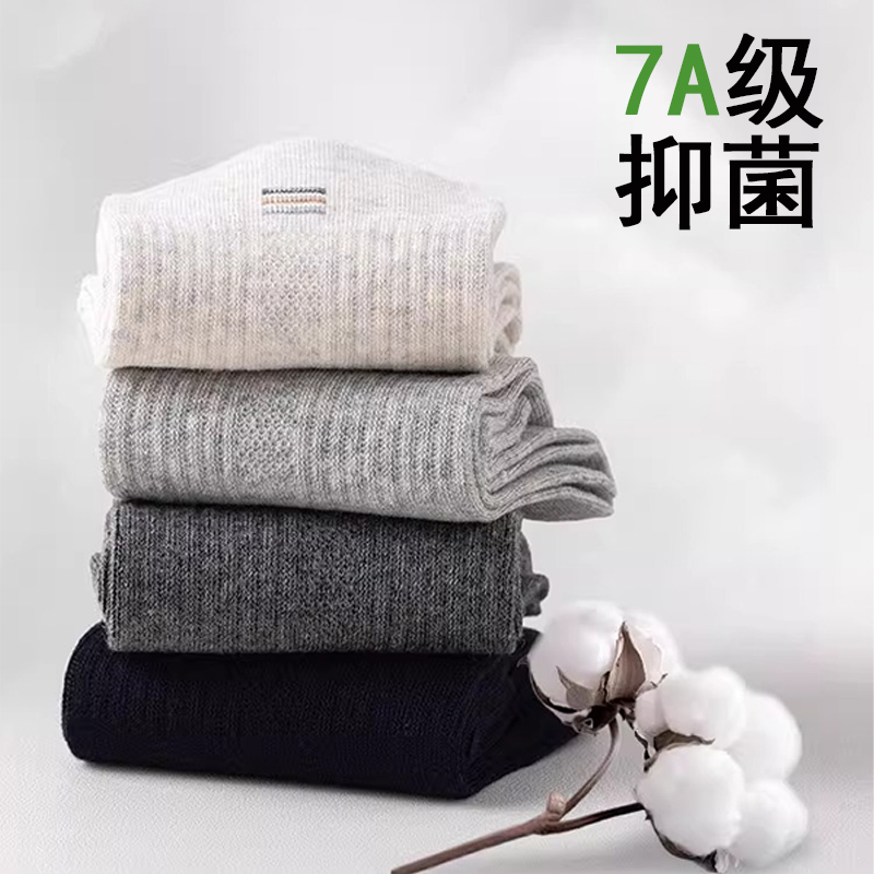 袜子男纯棉春秋款 中筒袜 短袜7a抗菌灰色无骨防臭脚吸汗青少年男士