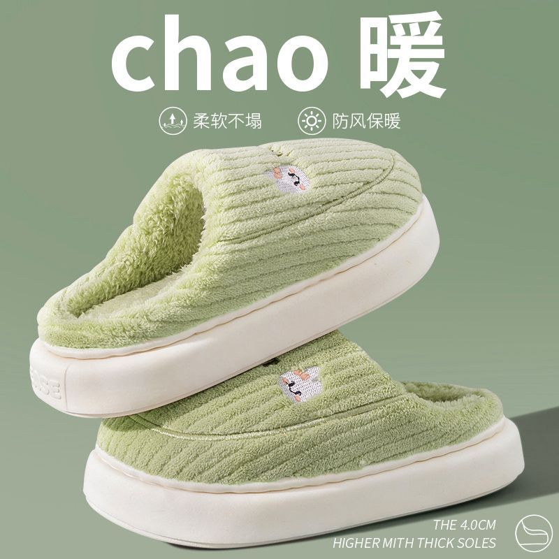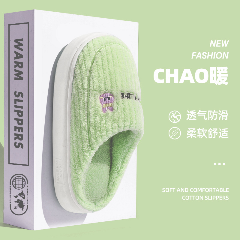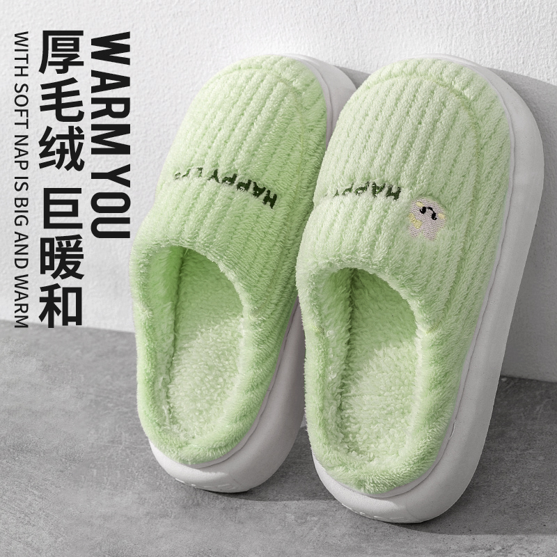 棉拖鞋 保暖厚底情侣款 绿色多规格 冬季 2025新款