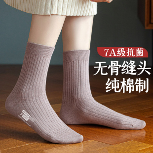 全棉袜子女士春秋季 厚灰色长袜无骨 中筒袜优质纯棉防臭抗菌秋冬款