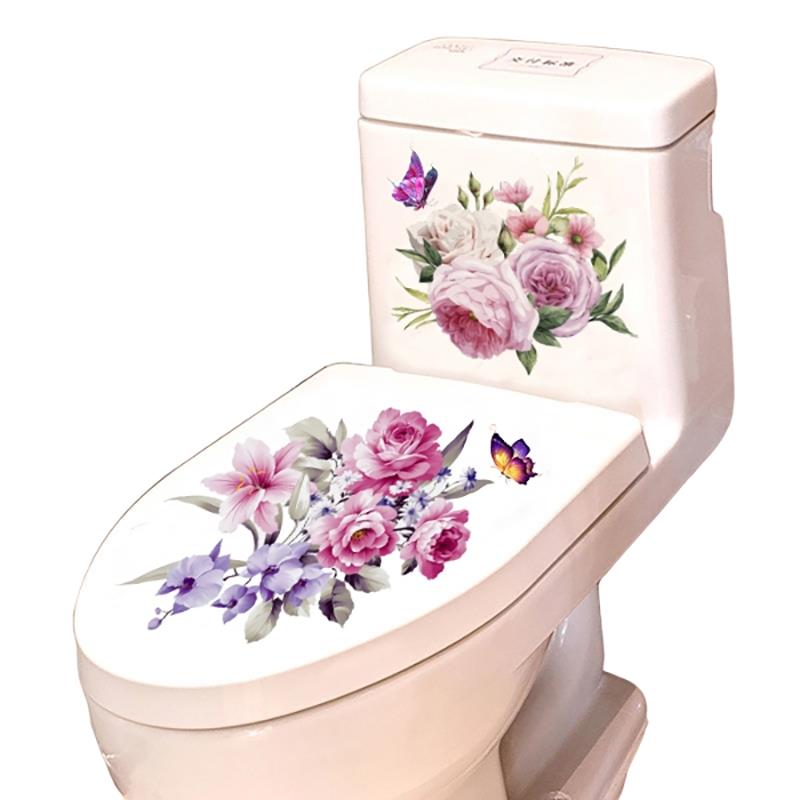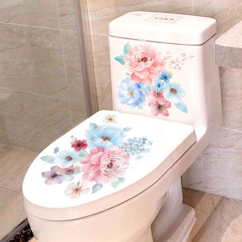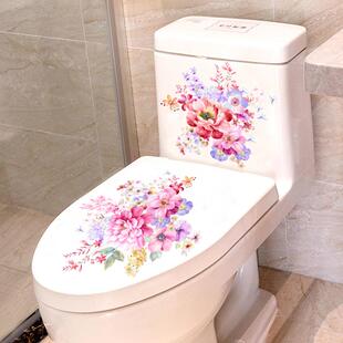 马桶装 饰花朵防水墙贴纸韩国创意卡通浴室厕所马桶盖防污花纹贴画