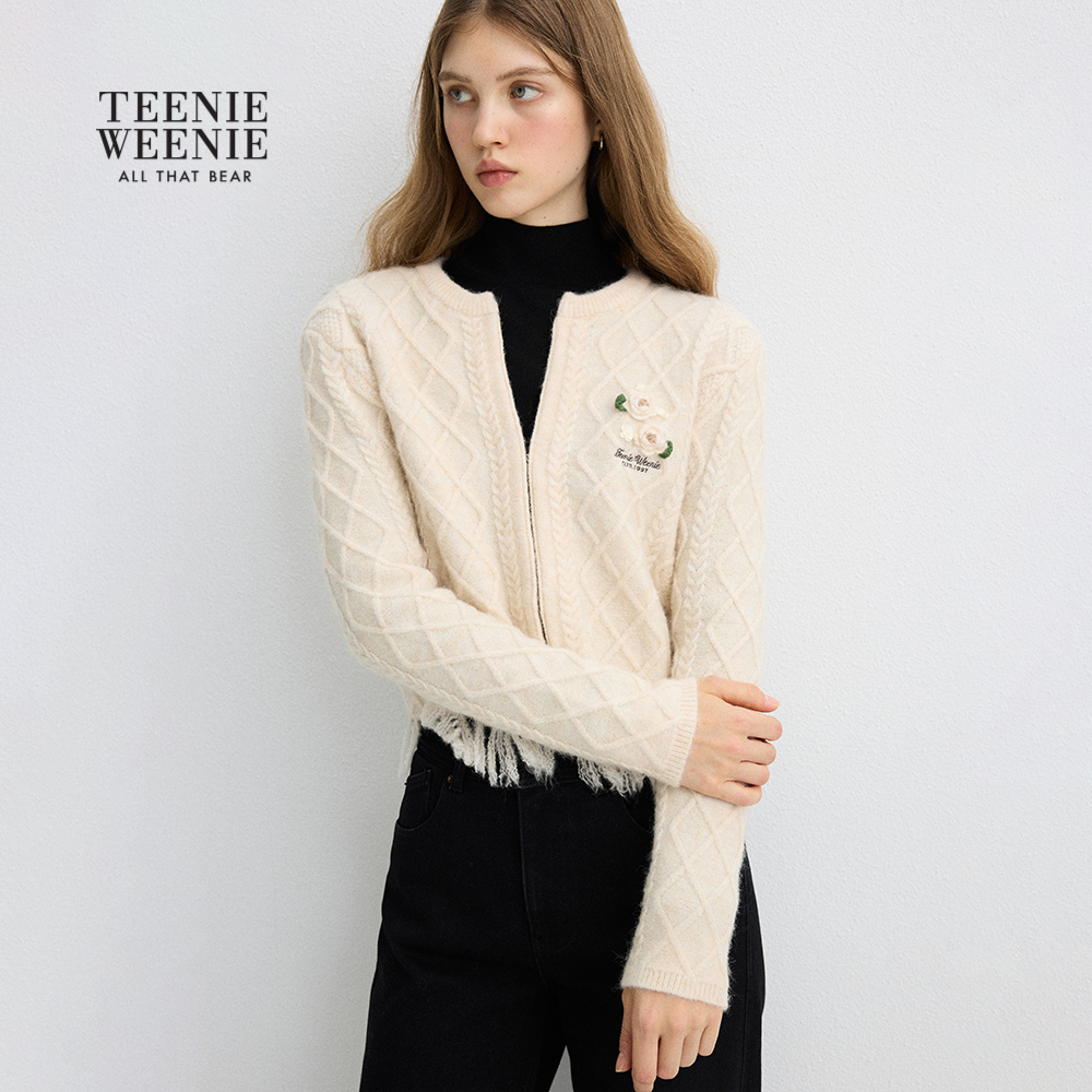新款 2025冬季 菱形格纹绞花流苏毛衣 毛针织衫 TeenieWeenie小熊女装
