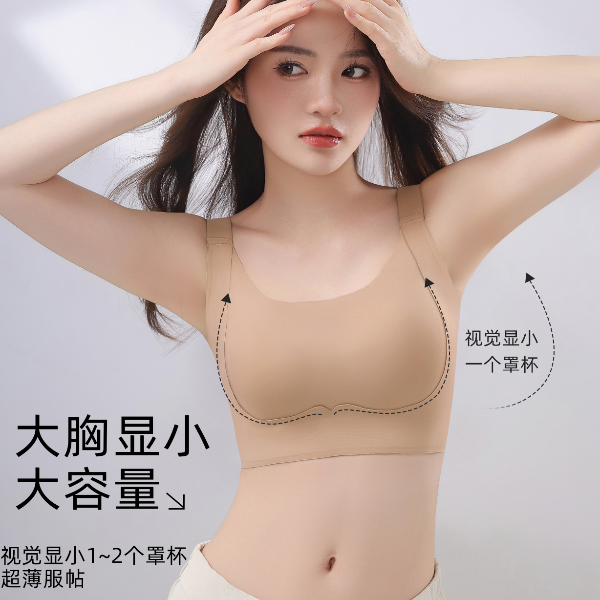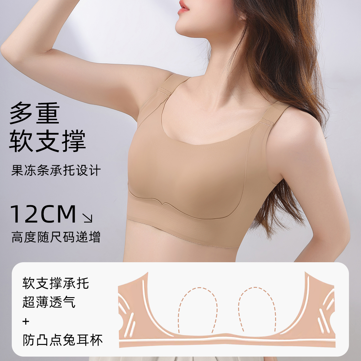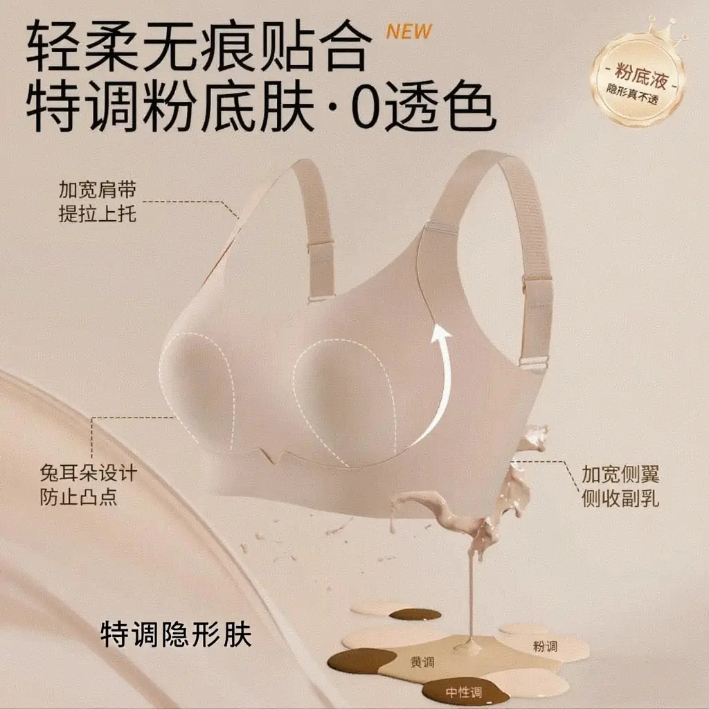 大胸显小内衣女粉底液隐形无痕提拉收副乳防下垂调整型兔耳杯文胸