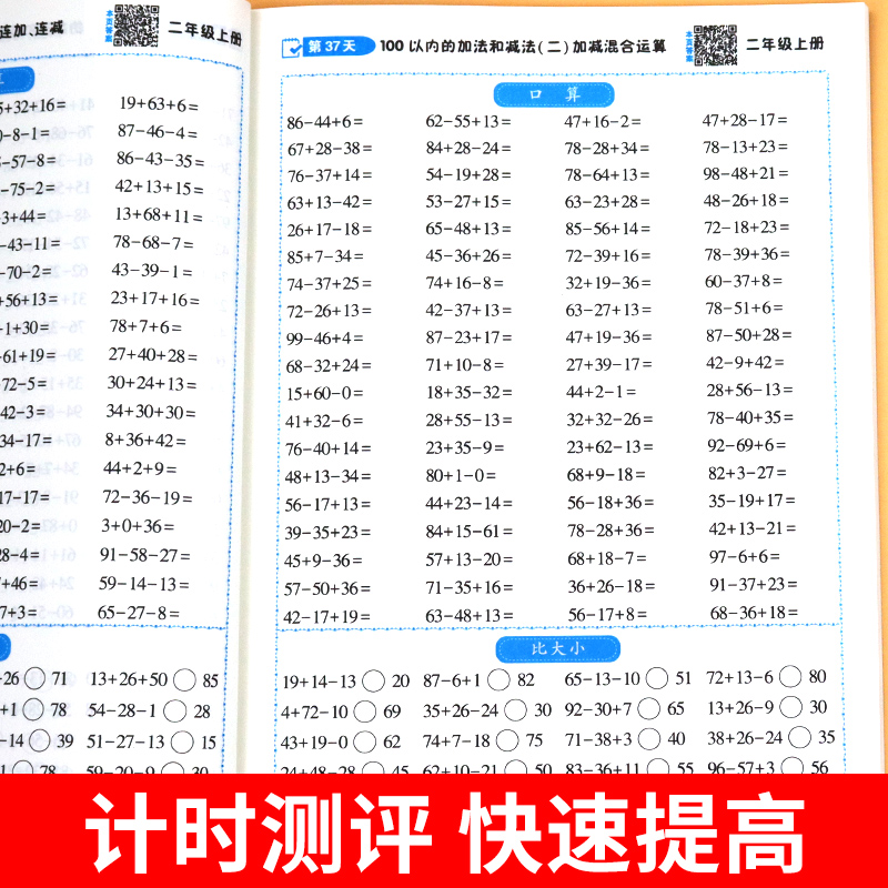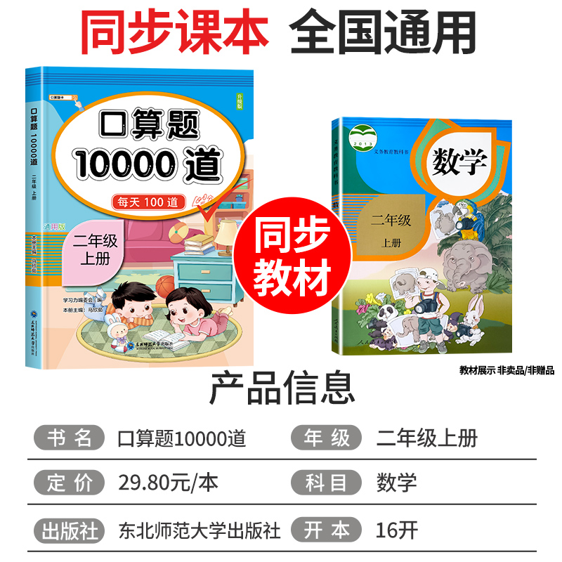 二年级口算天天练上册配套人教版 小学2年级数学思维训练题同步练习册表内乘法乘除法口诀专项练习题下册K 口算题卡10000道每日一练