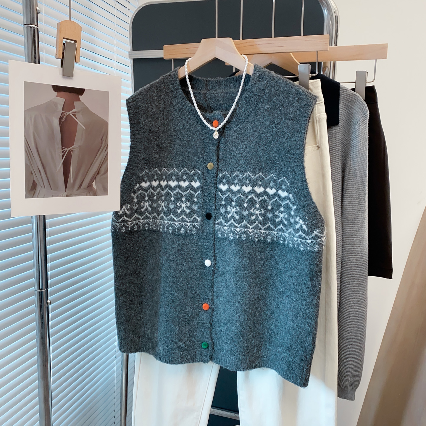 开衫 2025新款 提花针织马甲女秋冬圆领叠穿坎肩洋气复古休闲无袖