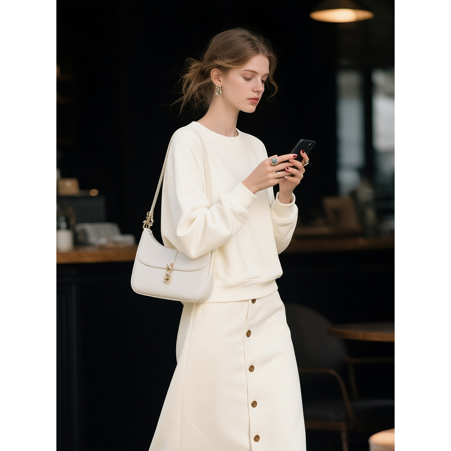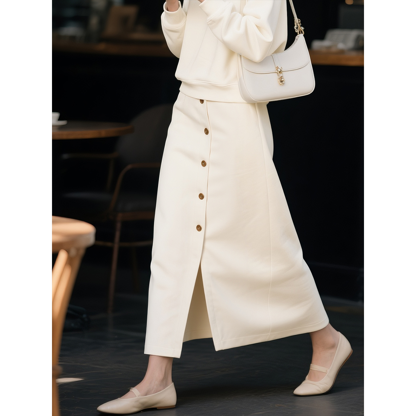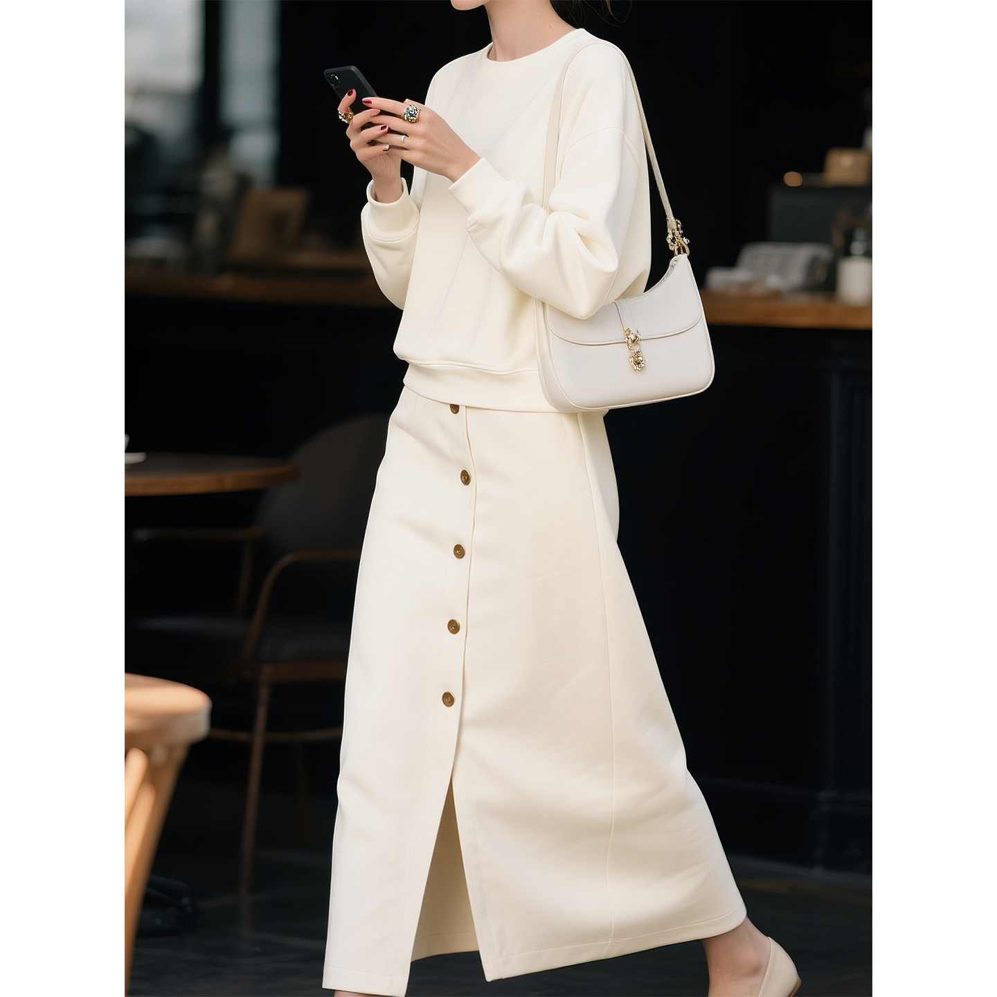 新款 女2025年秋季 宽松卫衣高腰开衩半身裙两件套 套装 白色早秋时尚
