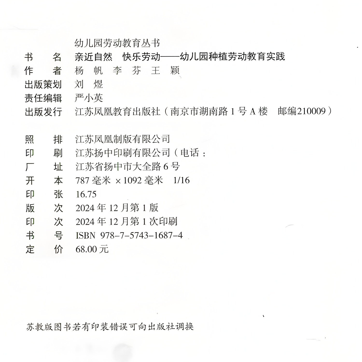 亲近自然 物出版 快乐劳动 江苏省十四五时期重点出版 专项规划项目 幼儿园种植劳动教育实践 幼儿园劳动教育丛书