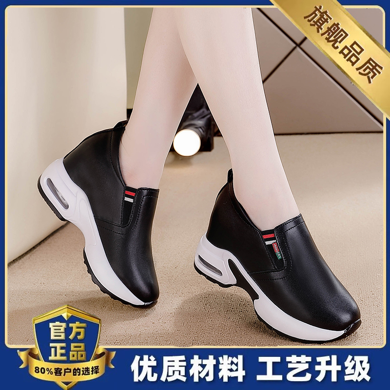 懒人一脚蹬女鞋 内增高2025早秋秀气真皮轻便坡跟妈妈乐福休闲单鞋