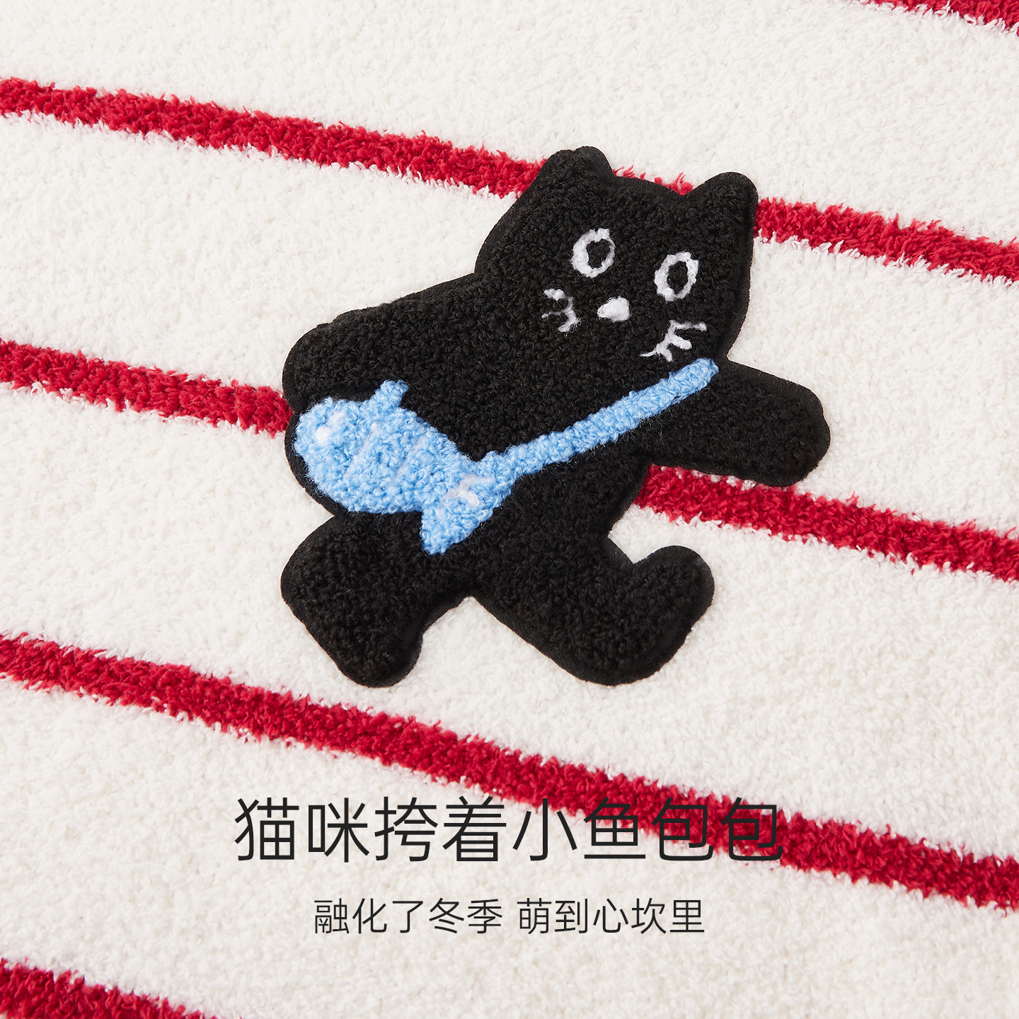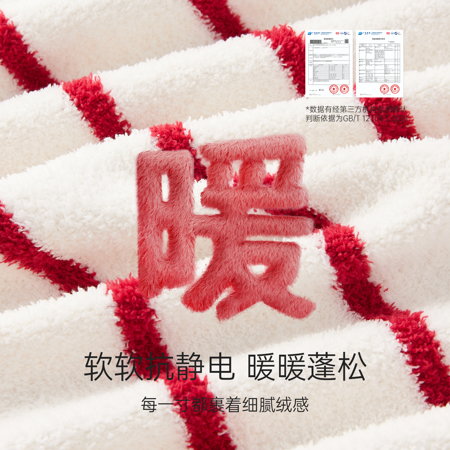 女士家居服套装 条纹加绒加厚珊瑚绒长袖 冬天 冬季 BE半边绒睡衣女款