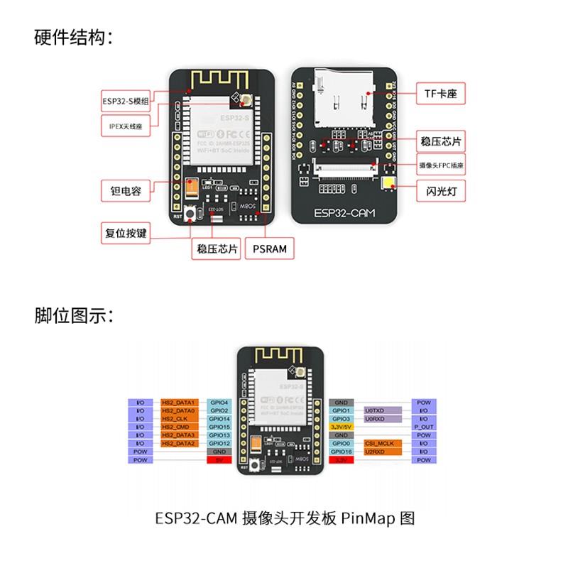 ESP32cam摄像头开发板图传模块手机相机图传WiFi监控串口视频采集