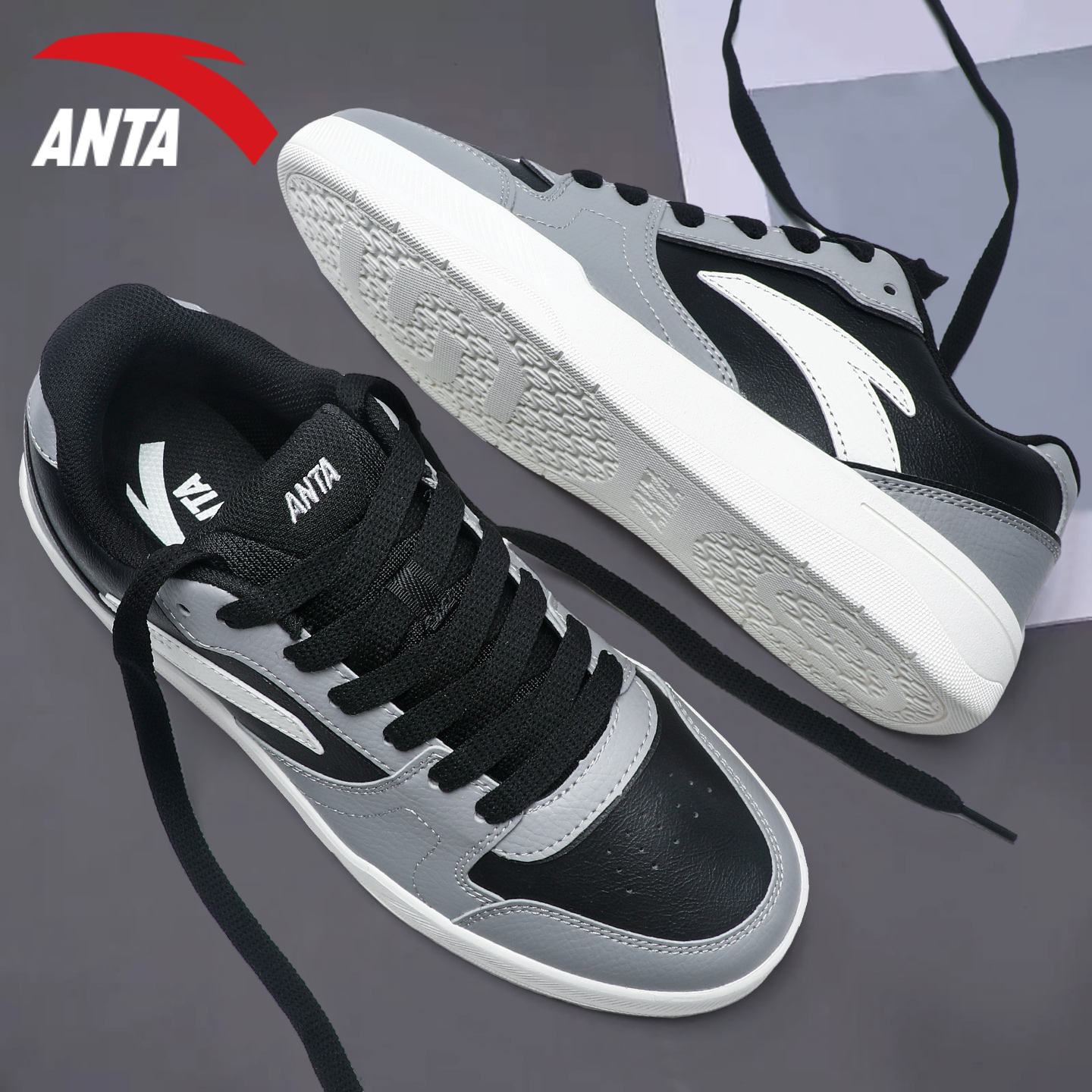 潮流复古青少年休闲低帮皮面运动鞋 安踏路冲板鞋 新款 2025秋季 男鞋