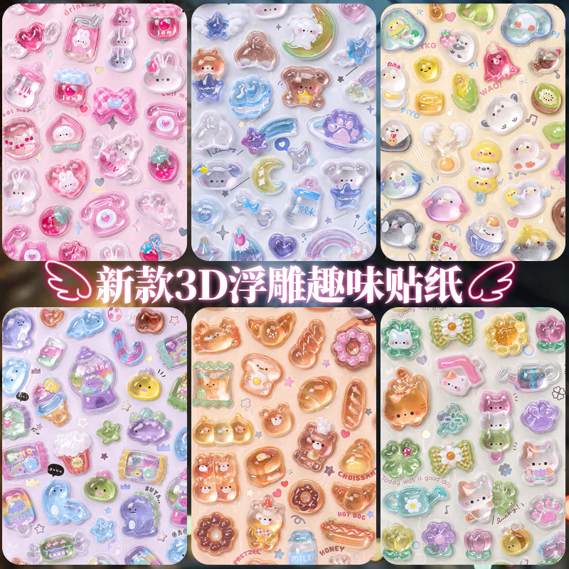 儿童贴纸女孩3d立体浮雕贴可爱咕卡贴画手机装 饰小图案宝石水晶贴