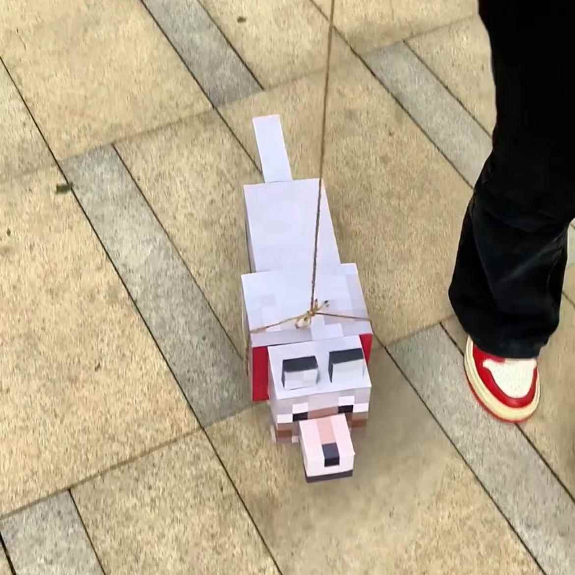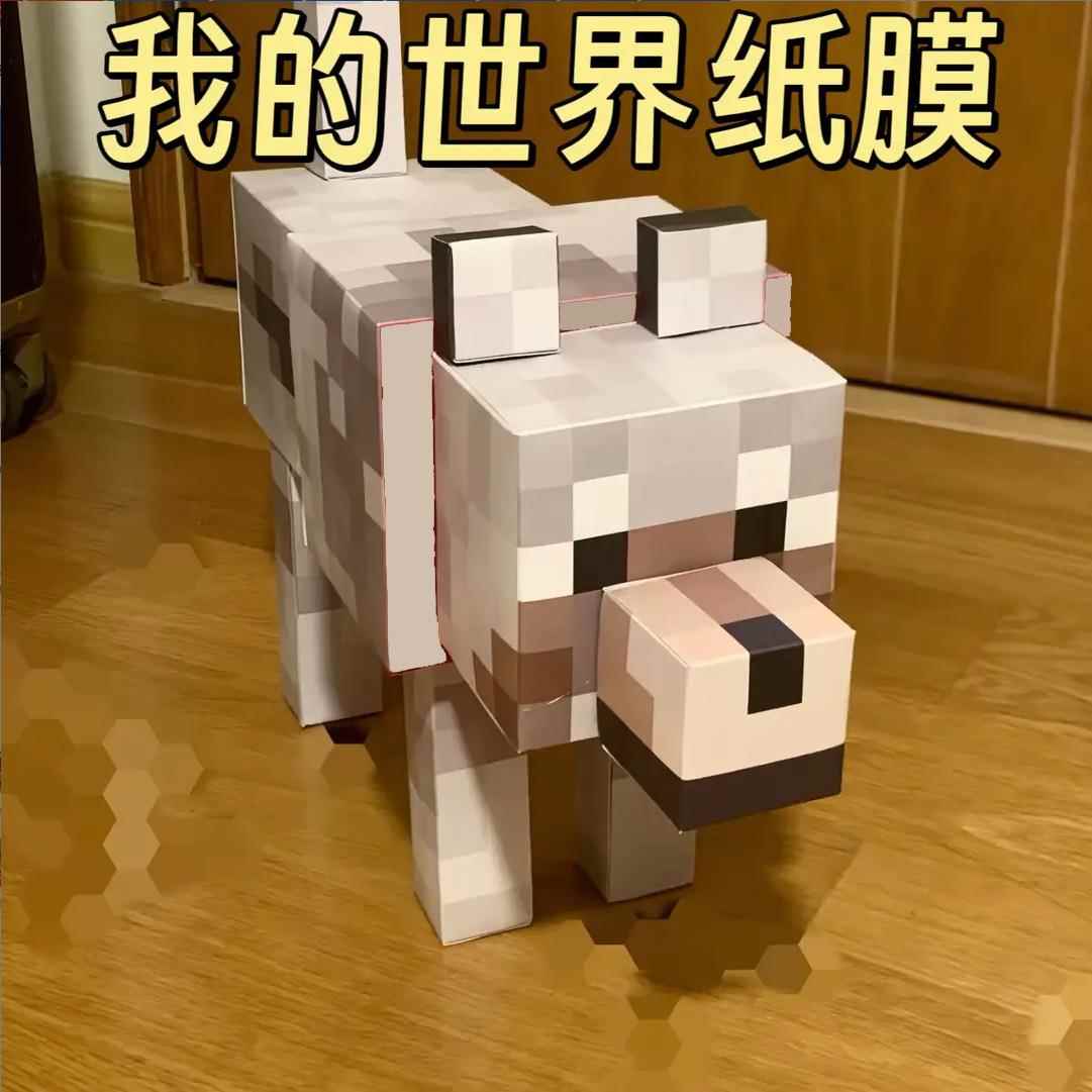 我 世界狼狗纸膜游戏动漫MC周边像素风模型摆件立体纸模折纸玩具