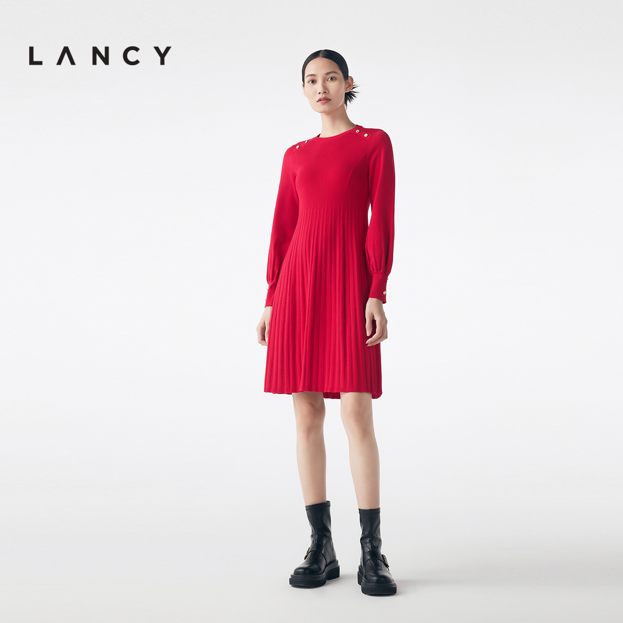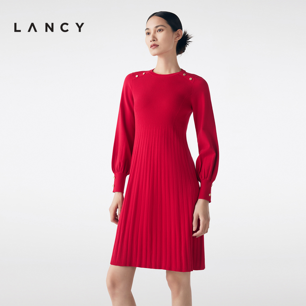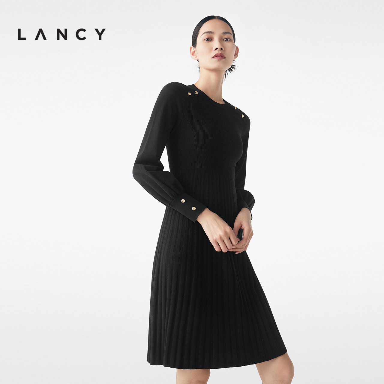 垂感法式 LANCY 羊毛针织连衣裙收腰修身 长袖 气质 朗姿秋冬新款