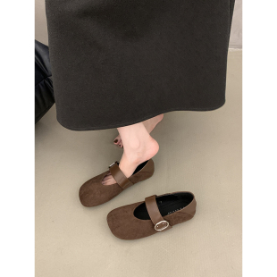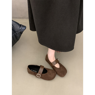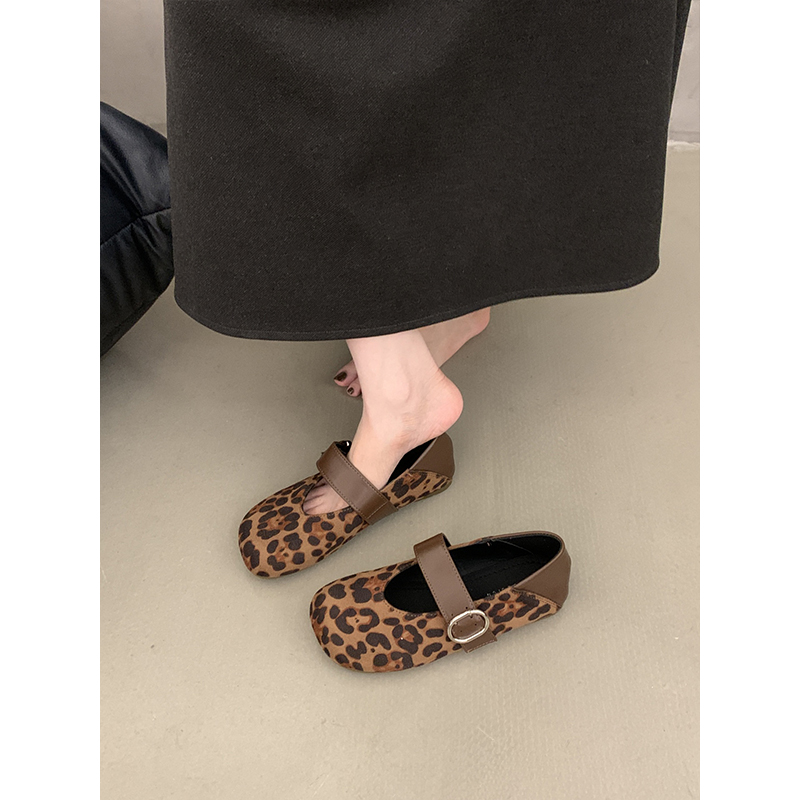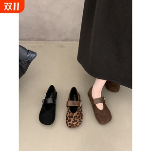 圆头一字带扣单鞋 勃肯鞋 女2025秋季 豹纹平底玛丽珍豆豆鞋 新款 韩版
