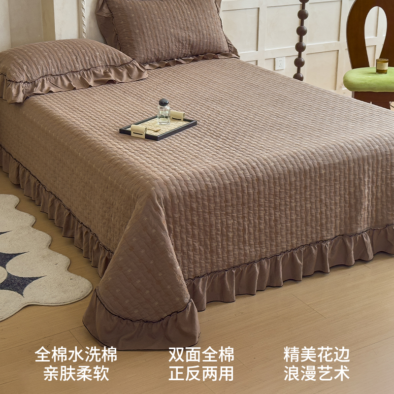 A类双层纱榻榻米床盖单件2025新款 通用夹棉床单人炕盖三件套 四季