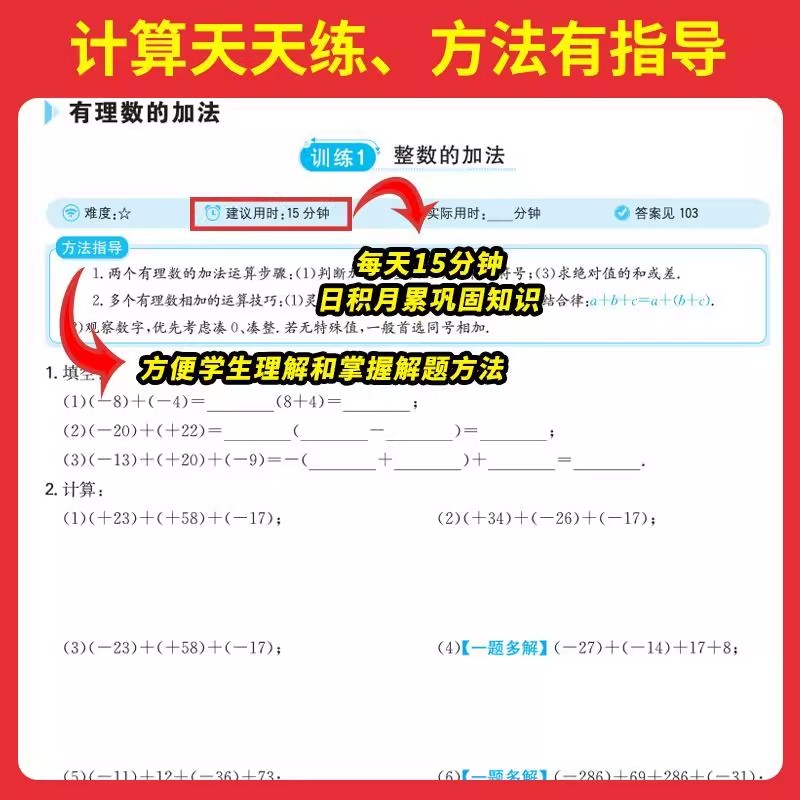 初中数学计算能力强化专项训练初一二初三中考复习同步练习册真题必刷题 北师版 2026版 一本计算题满分训练七年级八年级九年级人教版
