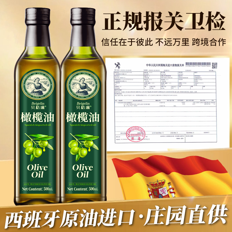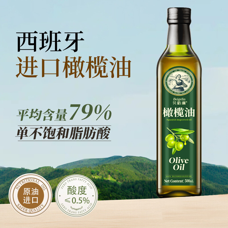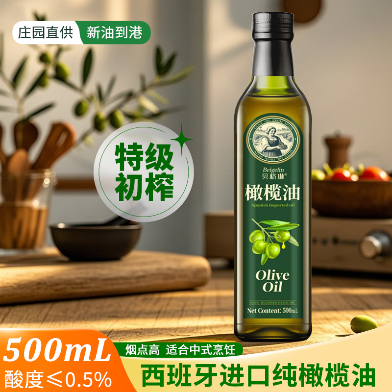 贝格琳纯正橄榄油500ml压榨食用油 低健身脂减餐含特级初榨橄榄油