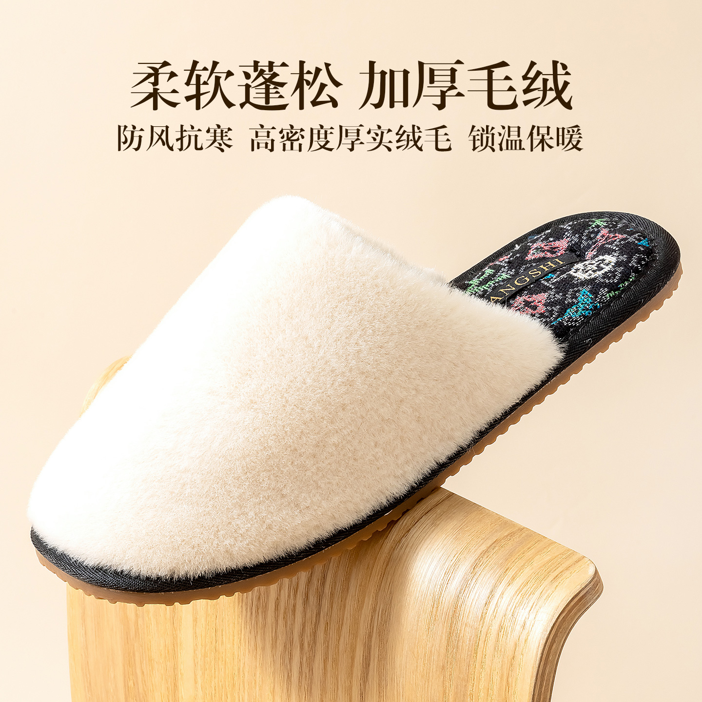 室内保暖家用厚底防滑毛毛绒情侣拖鞋 2025新款 男 女冬季 梁氏棉拖鞋