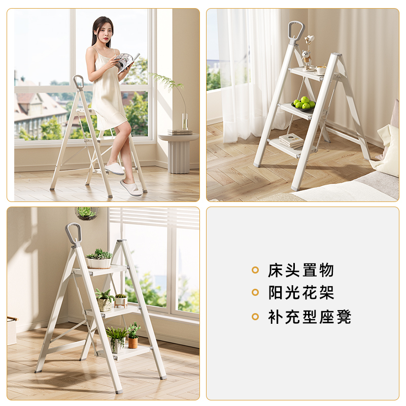 梯子家用折叠伸缩加粗加厚碳钢人字梯室内多功能楼梯三四步小梯凳