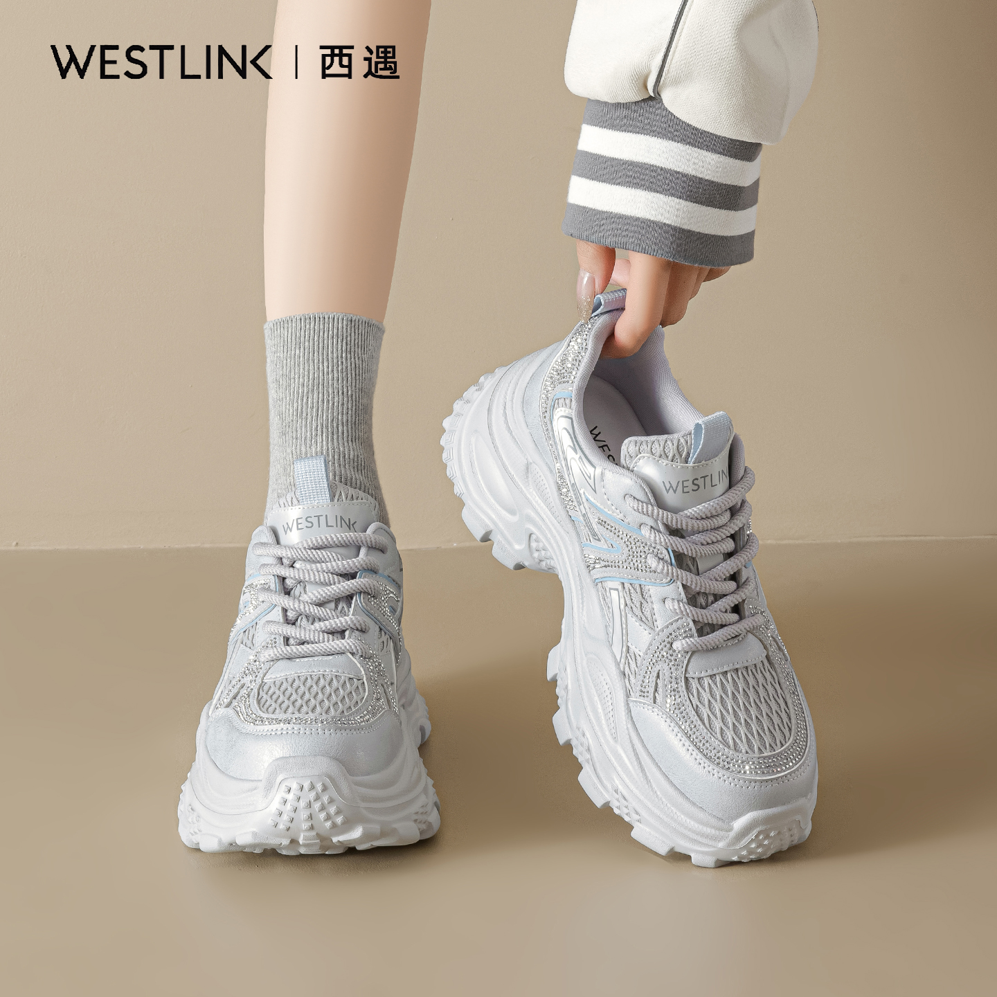 银色轻便透气运动鞋 2025新男女复古老爹鞋 斯凯奇月影鞋 成毅同款