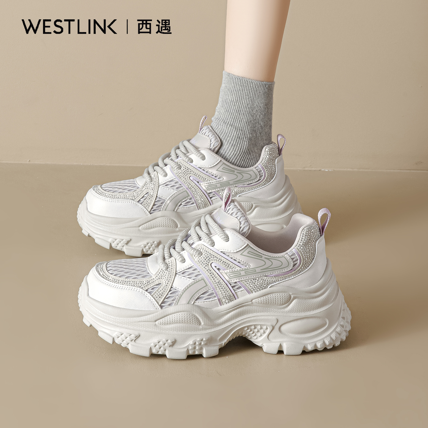 百搭运动休闲小白鞋 爆款 秋季 女小个子增高2025新款 松糕厚底老爹鞋