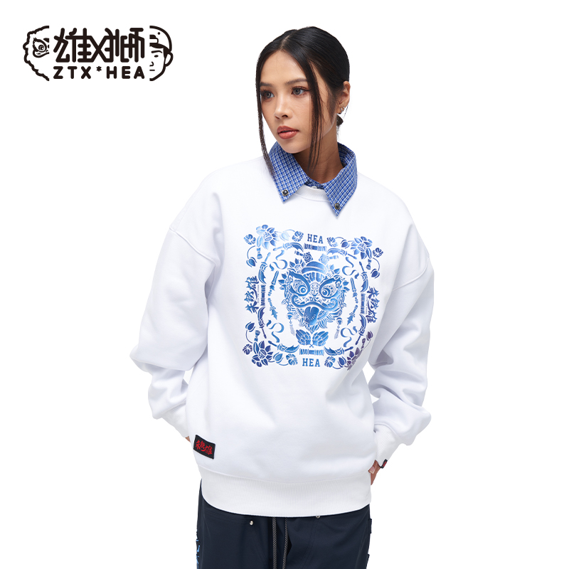 潮牌醒狮狮头廓形圆领卫衣男女同款 HEA联名秋冬新款 情侣 朱铁雄