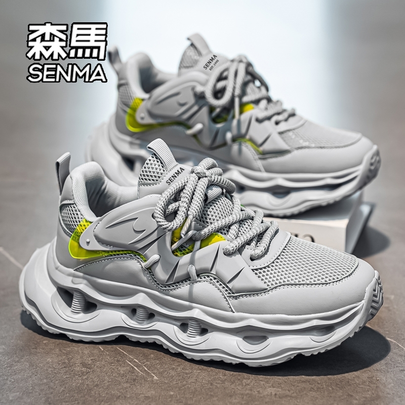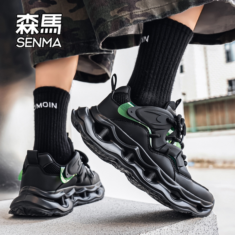 百搭休闲皮面防水青少年跑步运动篮球增高老爹鞋 森马高帮男鞋 秋季