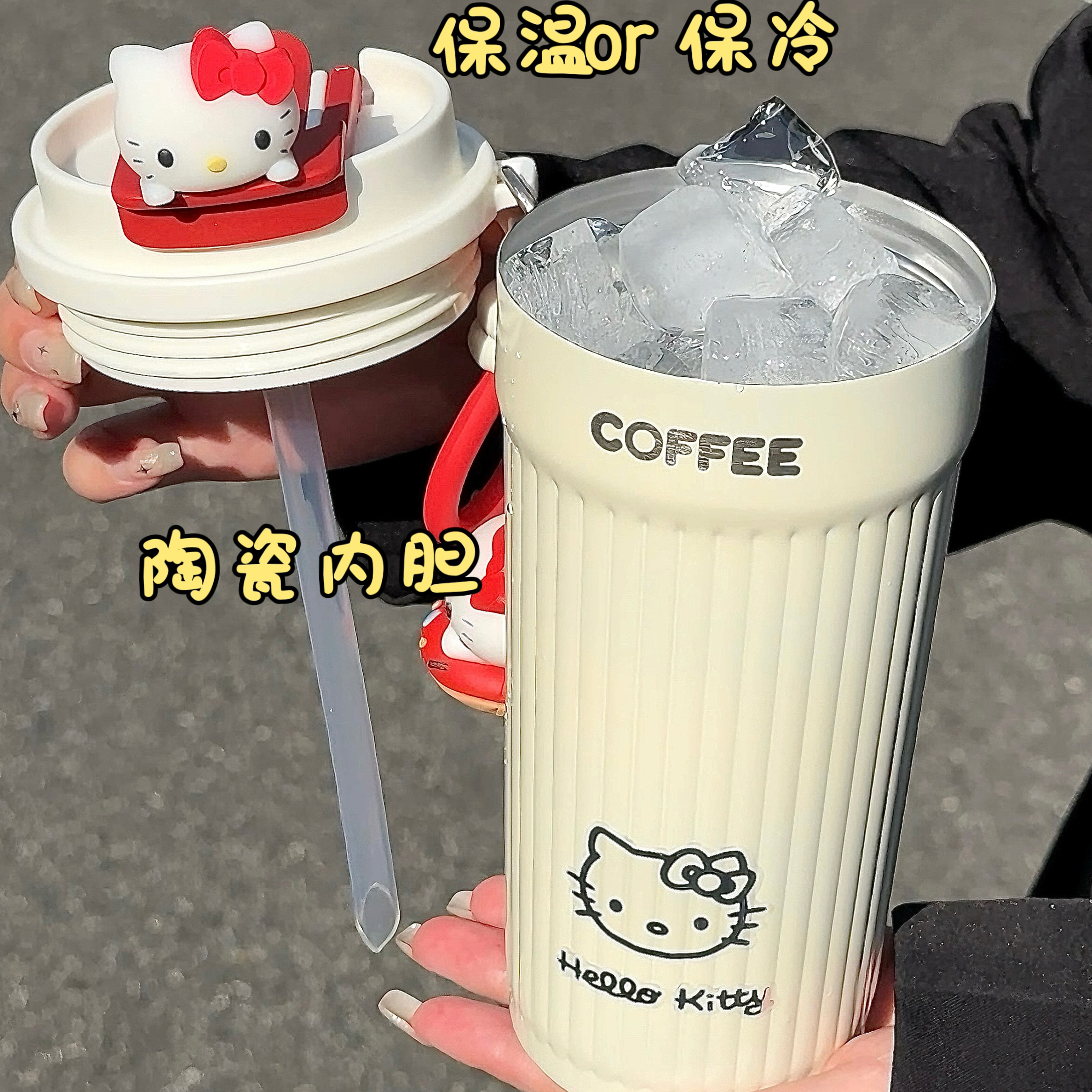 hellokitty保温杯女生高颜值2025新款 外出咖啡保冷杯办公室吸管杯