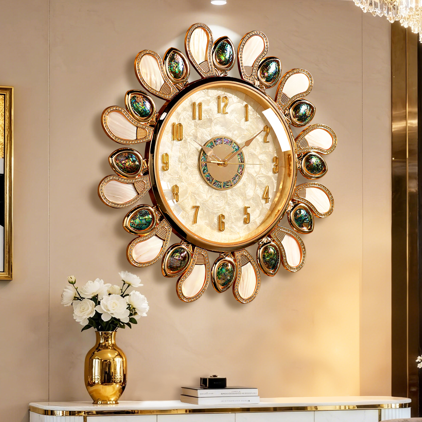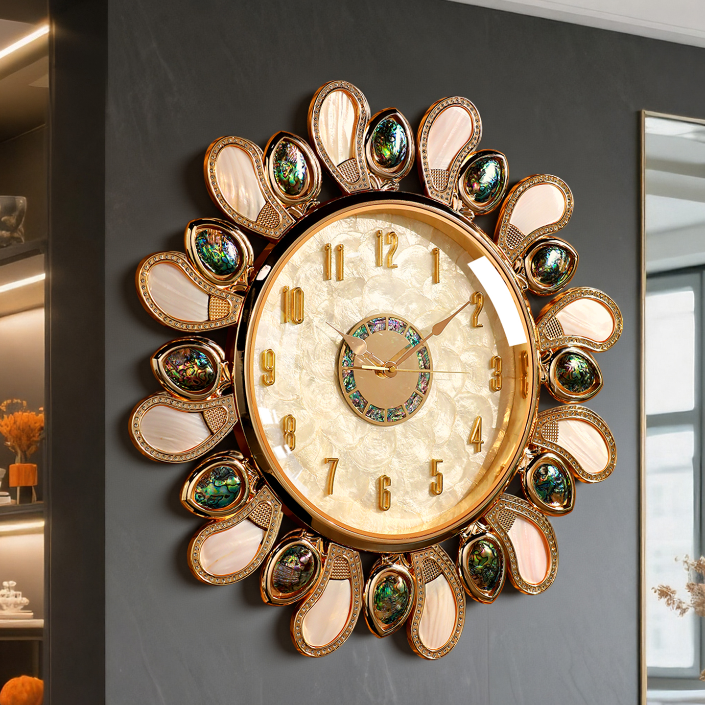 欧式 轻奢贝壳挂钟高级感客厅餐厅家用时钟表艺术高档创意大气挂表