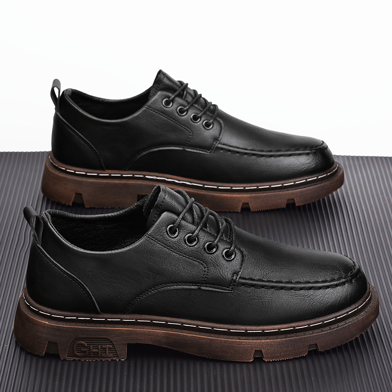 男款 通勤马丁靴厚底增高休闲皮鞋 圆头大头鞋 鞋 黑色工装 MRA德比鞋