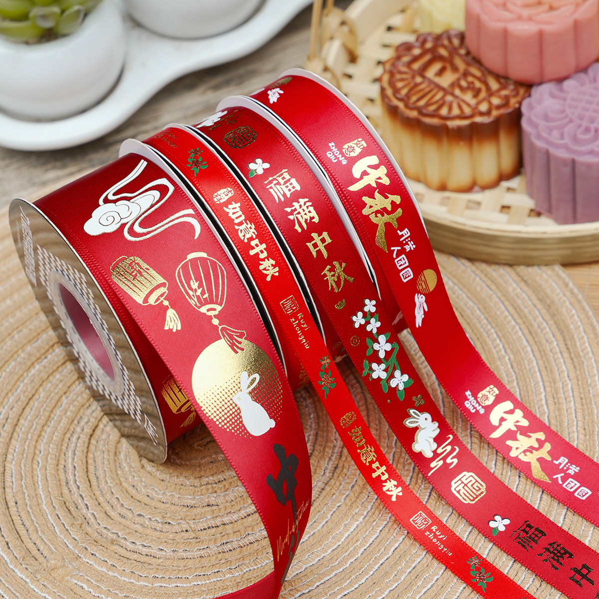 中秋节丝带水果礼盒装 彩带茶叶礼品打包缎带绳子 饰快乐月饼包装