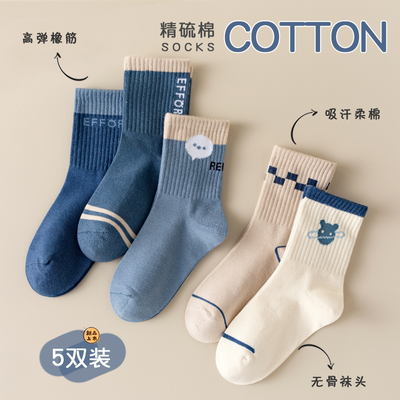 儿童袜子春秋纯棉防臭运动袜男童女童中筒潮袜男孩宝宝无骨袜薄款
