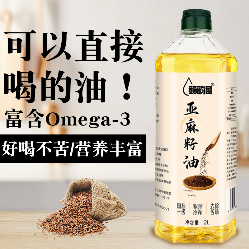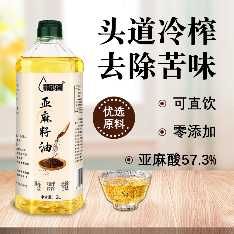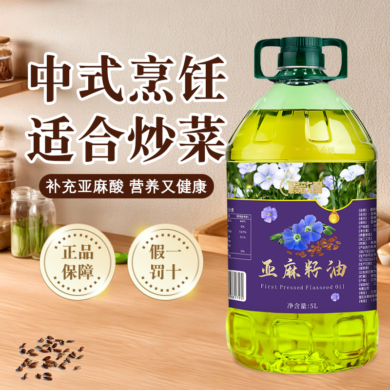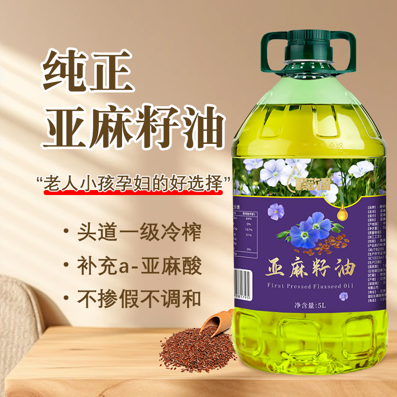 内蒙古纯亚麻籽油5L大桶一级压榨纯亚麻籽油胡麻油凉拌热炒食用油