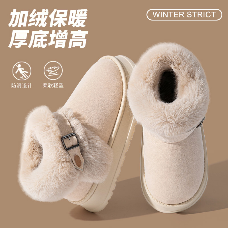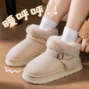 女士外穿 厚底增高保暖加绒包跟防水毛毛棉鞋 雪地靴女冬季 2025新款