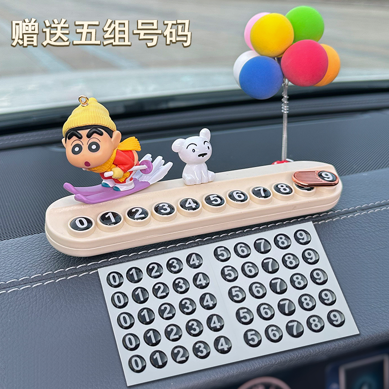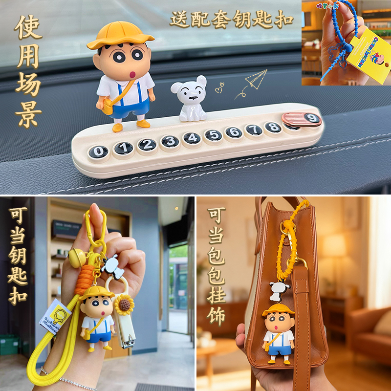 蜡笔小新汽车临时停车牌2025新款 牌挪车电话牌车内饰摆件 车载号码