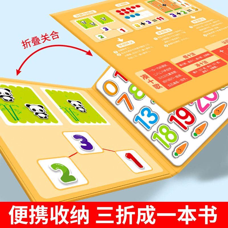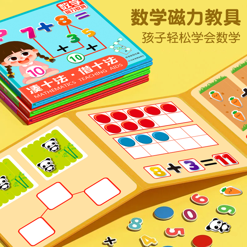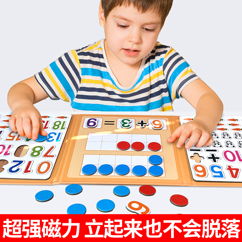 数学启蒙磁力教具 3岁到6岁一年级磁吸贴片数学教学幼儿园小班中班大班宝宝适用 凑十法借十法加减法十格阵蒙氏百数板分数板分数盘