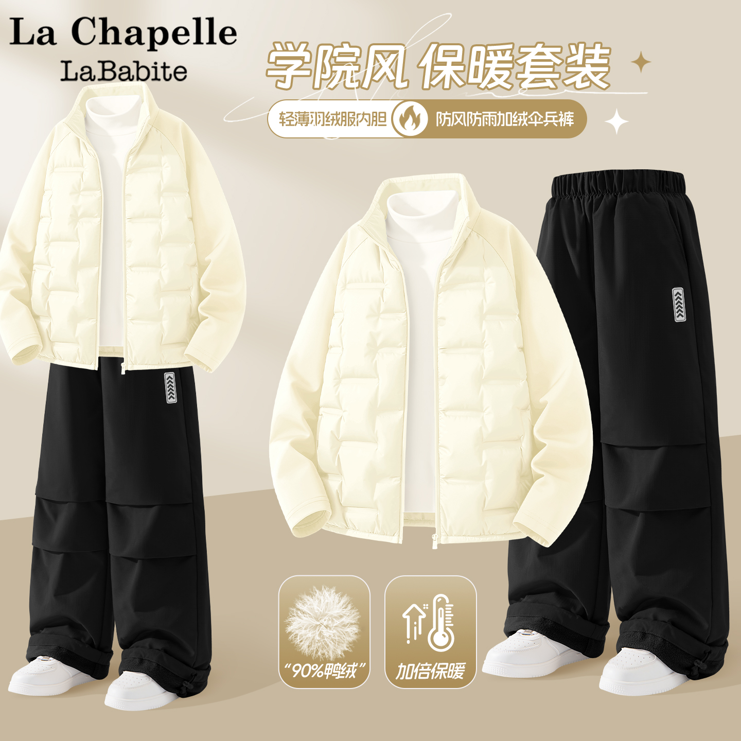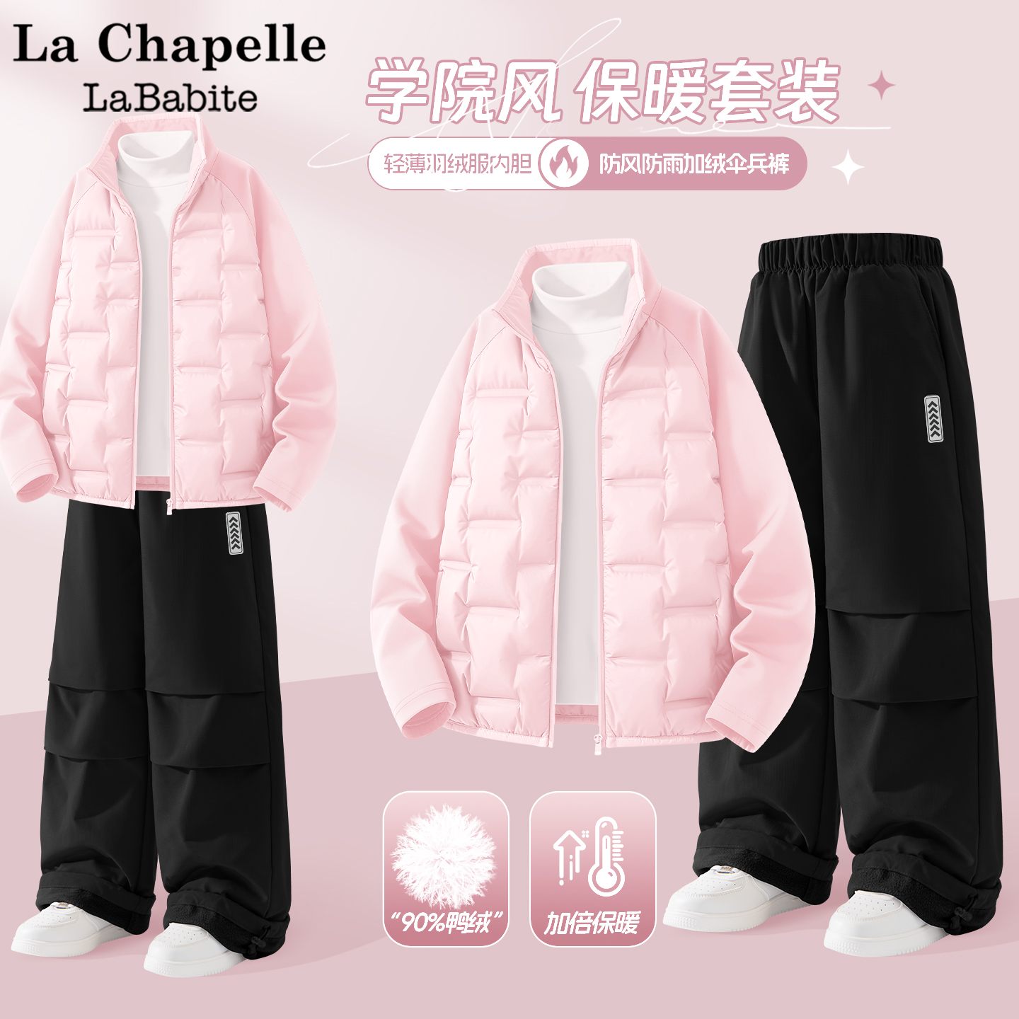 加绒伞兵裤 拉夏贝尔女童冬套装 儿童冬装 学院风童装 羽绒服2025新款