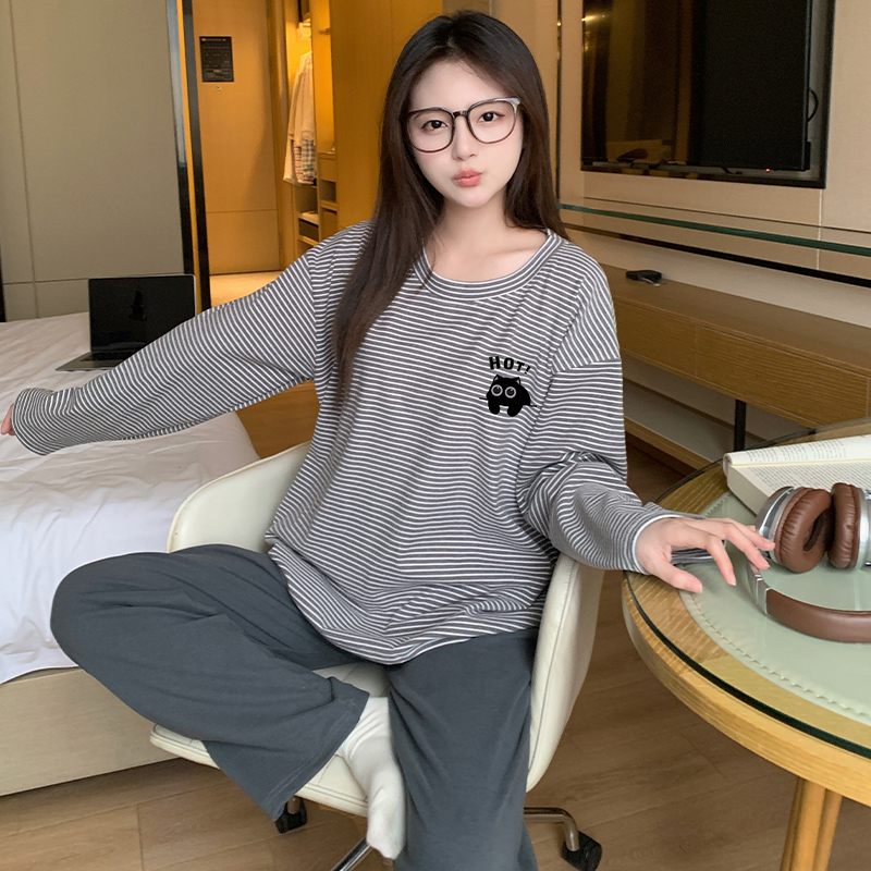 休闲条纹时尚 春秋季 少女学生可外穿家居服两件套 德绒长袖 睡衣女款