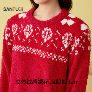 秋冬季 刘雯同款 长袖 红男款 ubras云棉家居服女士睡衣新婚情侣套装