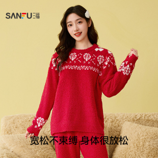 海岛绒可外穿家居服 简约薄款 睡衣女秋冬季 保暖珊瑚绒女士睡衣套装