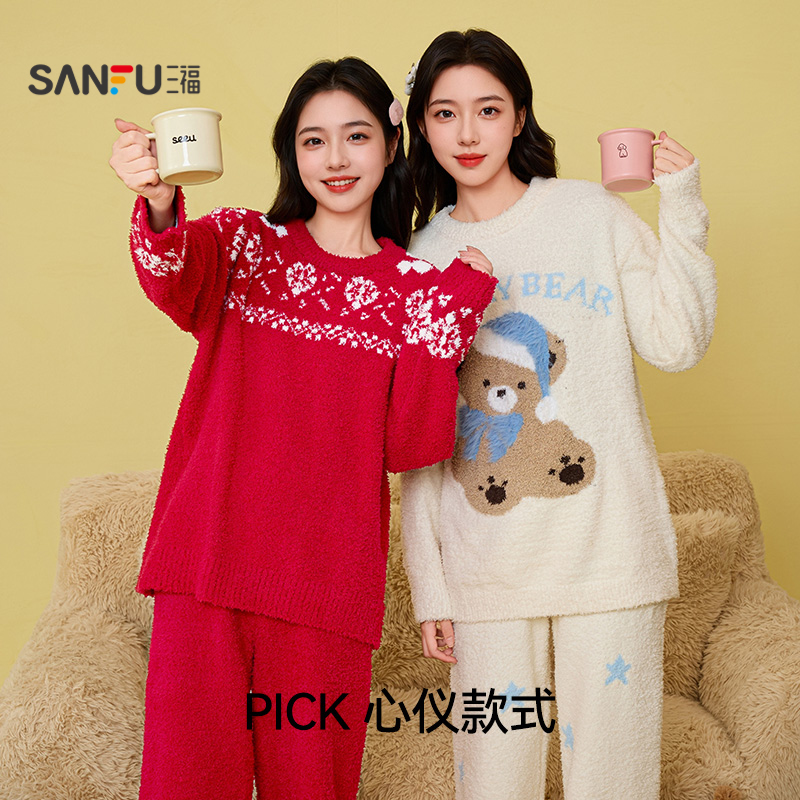 卡通秋冬款 2025年新款 法兰绒家居服 加厚保暖珊瑚绒套装 睡衣女冬季