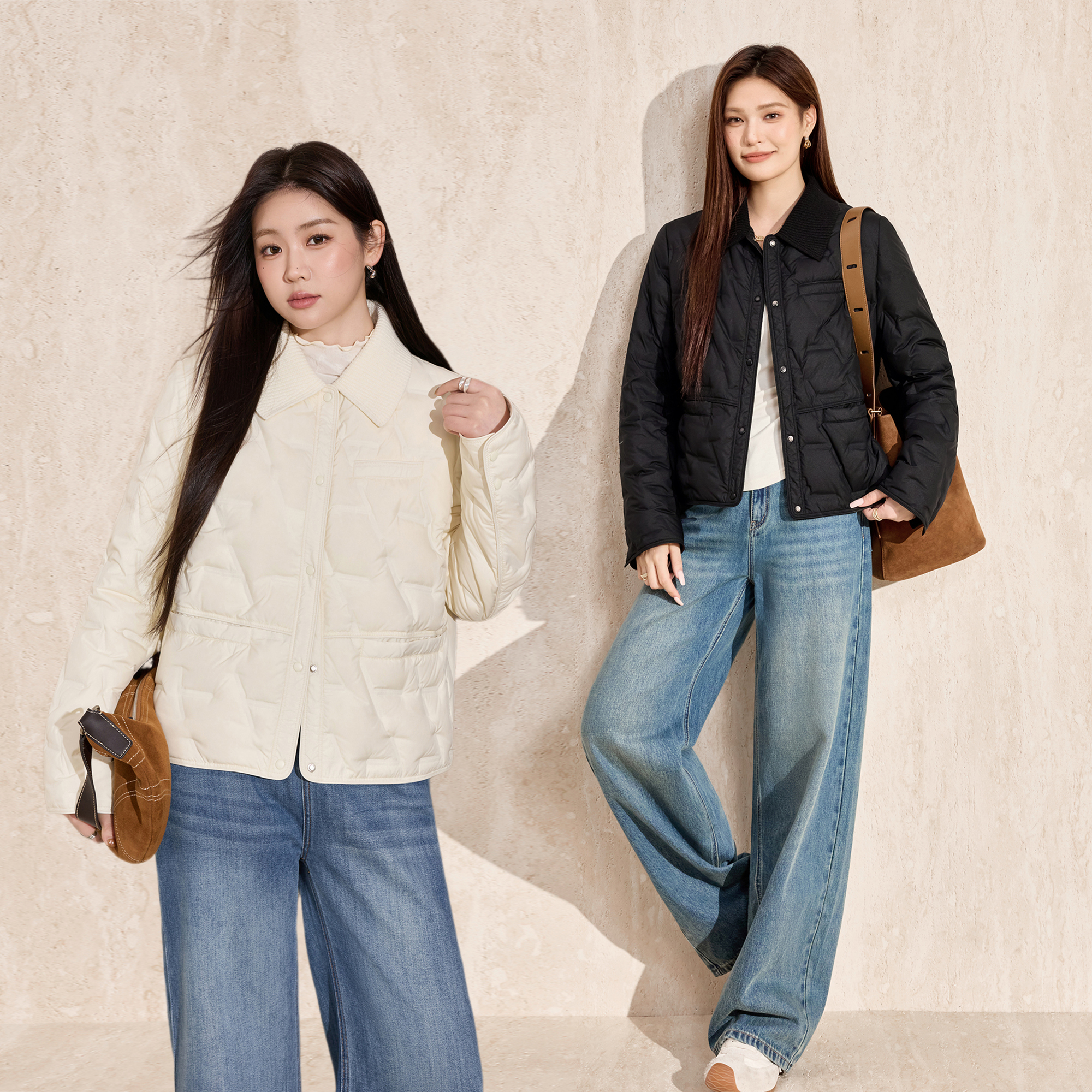 气质简约百搭外套 拼接针织领轻薄羽绒服2025秋冬新款 蓝语大码 女装