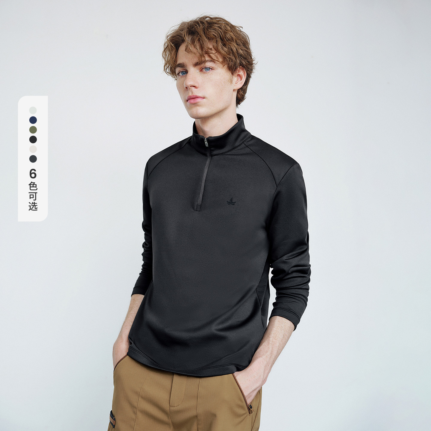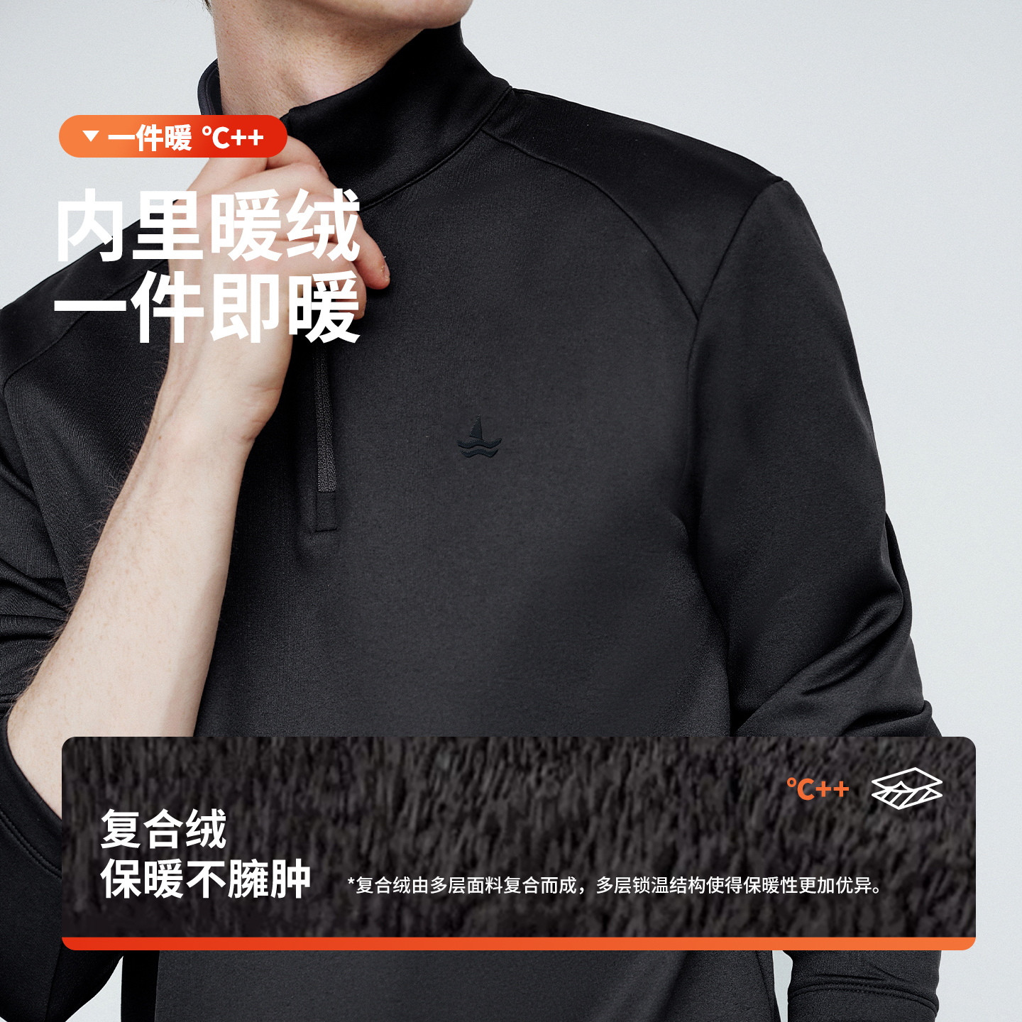 半开领套头衫 Navigare小帆船黑色加绒卫衣男秋冬新品 张新成同款